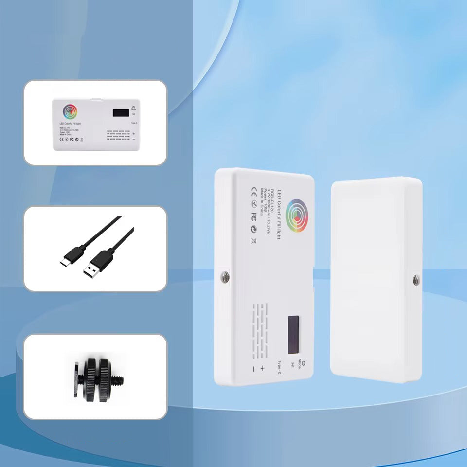High Quality, RGB LED Video Light Panel – Adjustable 2500–9000K Fill Light with LCD Display, Cold Shoe Mount for Live Streaming, Vlogging, and Apple Devices