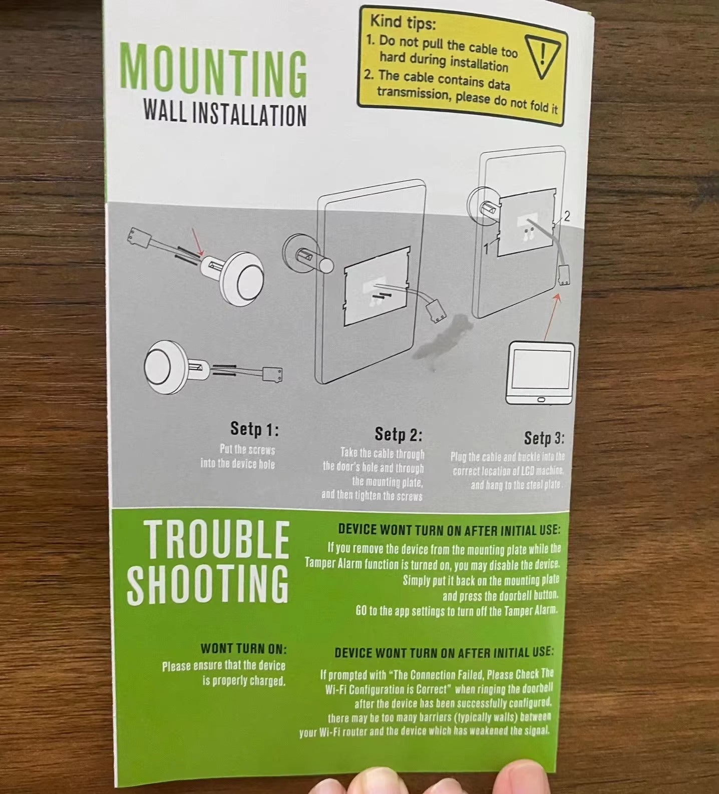 - Instructions: Drill or use existing peephole, insert camera and connect to LCD monitor via cable. Connect system to WiFi using Smart Life app, monitor activity, and receive alerts directly on your iPhone.
