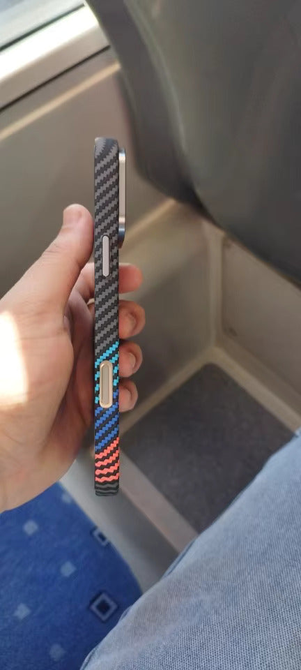 The Hit Color Carbon Fiber Texture MagSafe Phone Case is designed for users who want their phone case to make a statement. The hit color accents combined with the carbon fiber texture and relief design give it a distinctive and dynamic look, while the lightweight and slim profile keep it practical for everyday use.