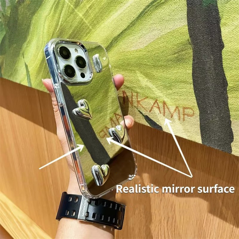 Add a touch of romantic shine to your phone with the Luxury Silvery Heart Mirror Cover. This elegant iPhone case combines a sleek mirror-finish surface with charming silvery heart accents.