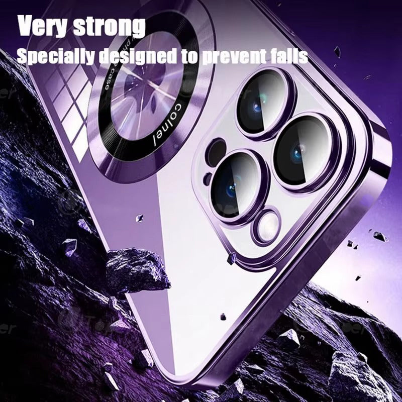 This clear plating TPU iPhone case with MagSafe and lens film protection is ideal for users who want to protect their device with elegance. Whether you're charging wirelessly or flaunting your phone’s style, this case offers premium clarity with reliable defense.