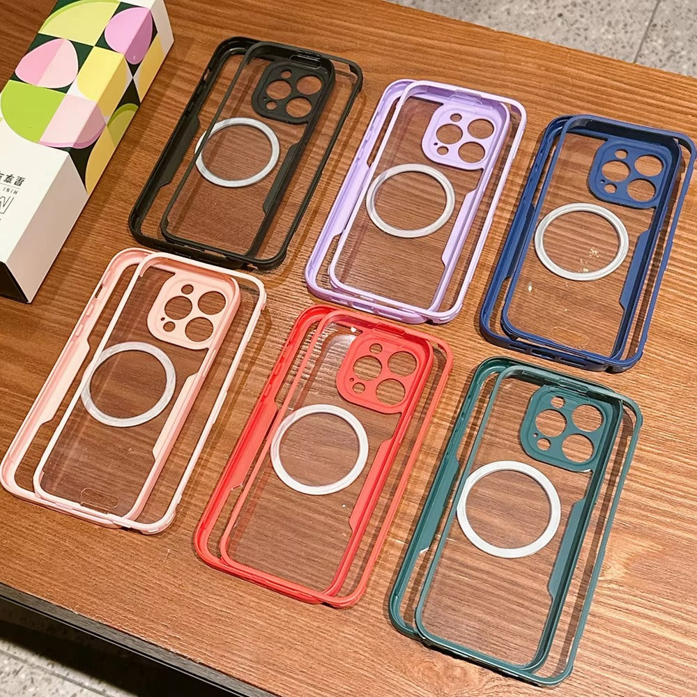 Luxury Apple iPhone Case MagSafe Compatible, Camera Lens & Screen Protection, Ultra Thin Shockproof Magnetic Full All Around Protection Cover with Double Touch Clear Design