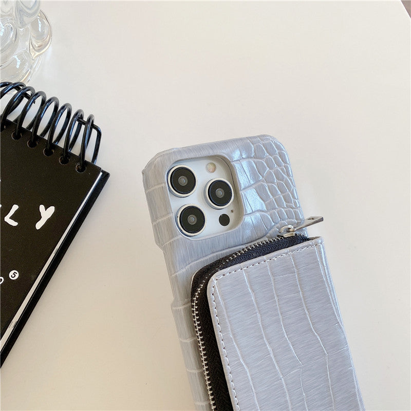 Luxury Crossbody Crocodile Skin iPhone Case – Zipper Wallet, Card Holder, Shockproof Protection, and Elegant Design for Secure & Stylish Convenience