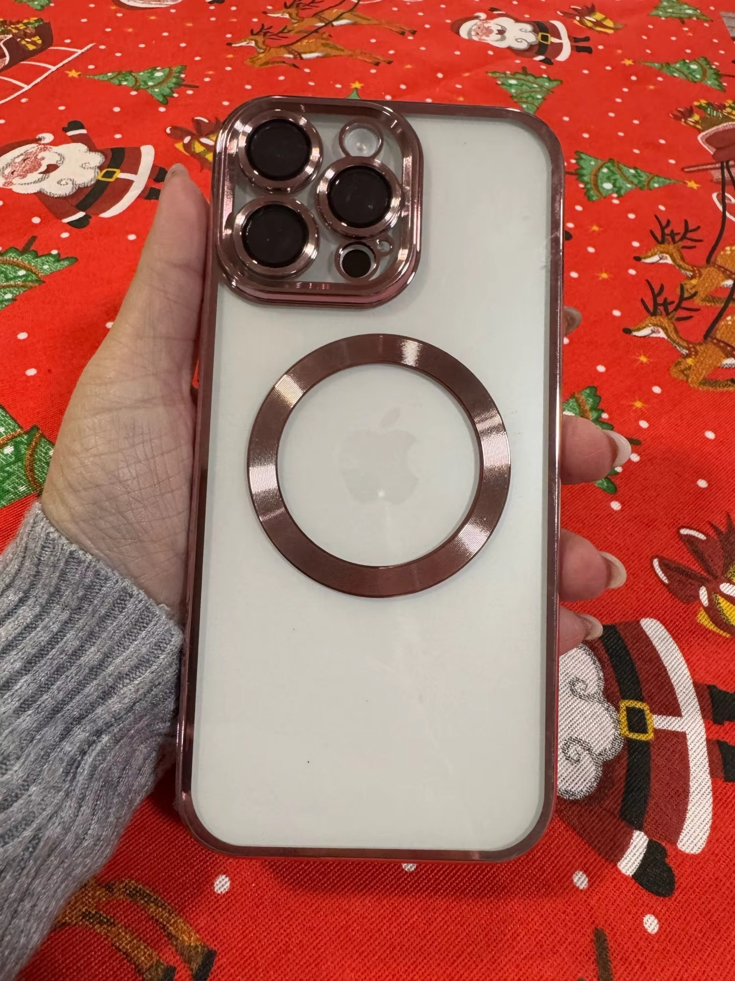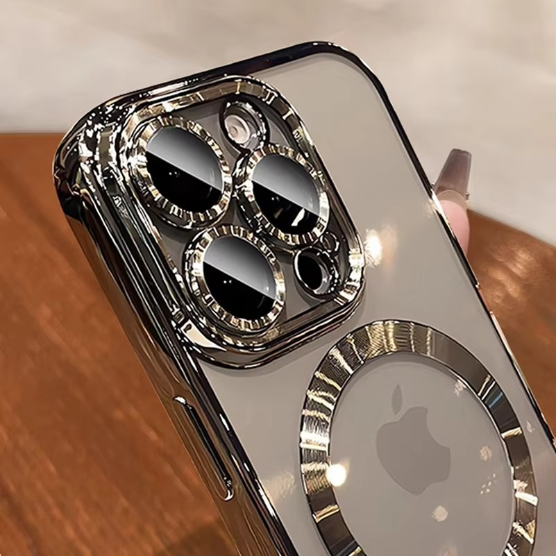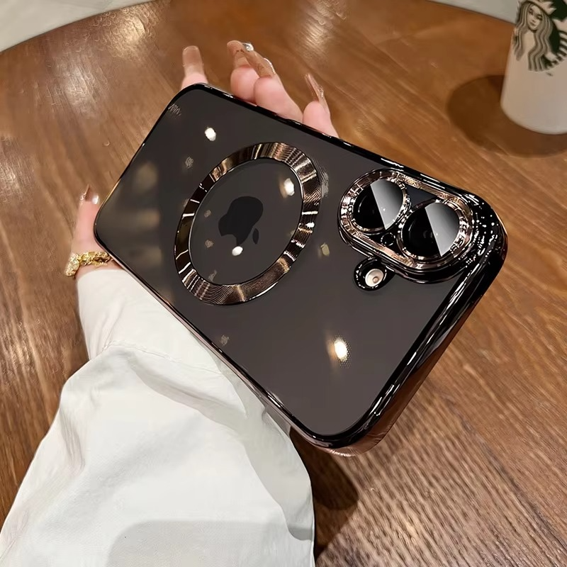 This MagSafe-compatible case with electroplated detailing is perfect for users who want a stylish look while maintaining wireless charging efficiency. The transparent silicone TPU keeps your iPhone’s original design visible, while the plating accents add a premium finish for a luxurious feel.