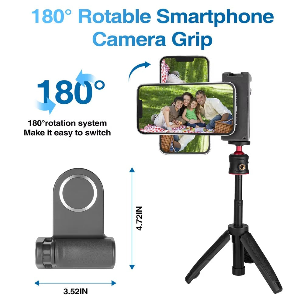 With a powerful MagSafe-compatible magnetic system, integrated Bluetooth shutter remote, and 180° rotatable grip design, this iOS phone holder with kickstand transforms your iPhone into a mini studio on the go.