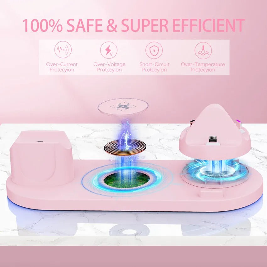 With fast charging speeds, multiple device compatibility, and advanced safety protections, the Premium 6 in 1 Wireless Charging Station turns messy cables into a single, elegant charging solution you’ll use every day.