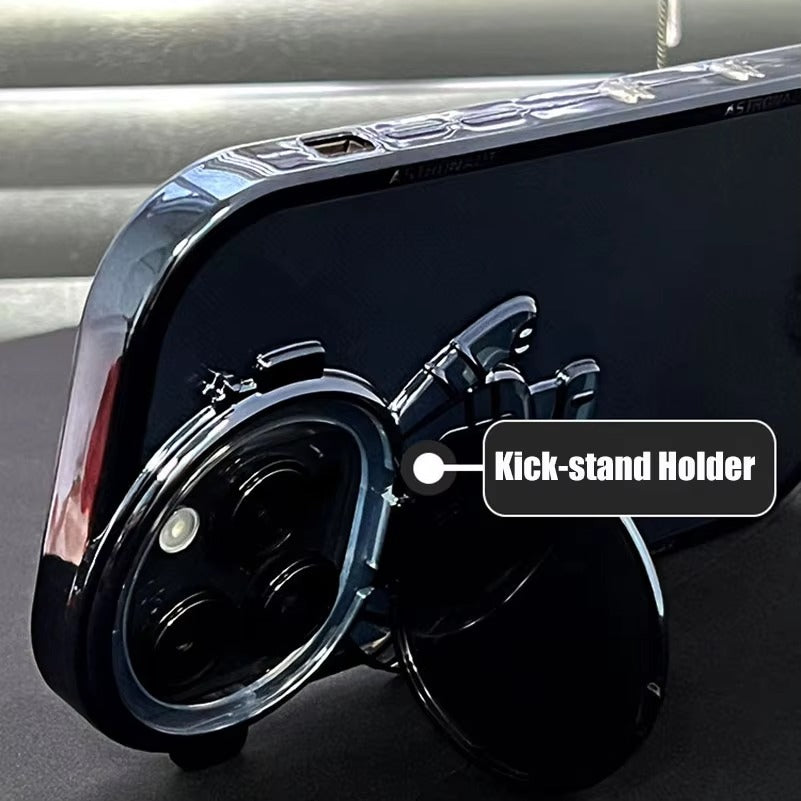which flips out into a sturdy kickstand—perfect for watching videos, video calls, or hands-free multitasking. Integrated magnets allow for smooth MagSafe wireless charging and full magnetic accessory support.