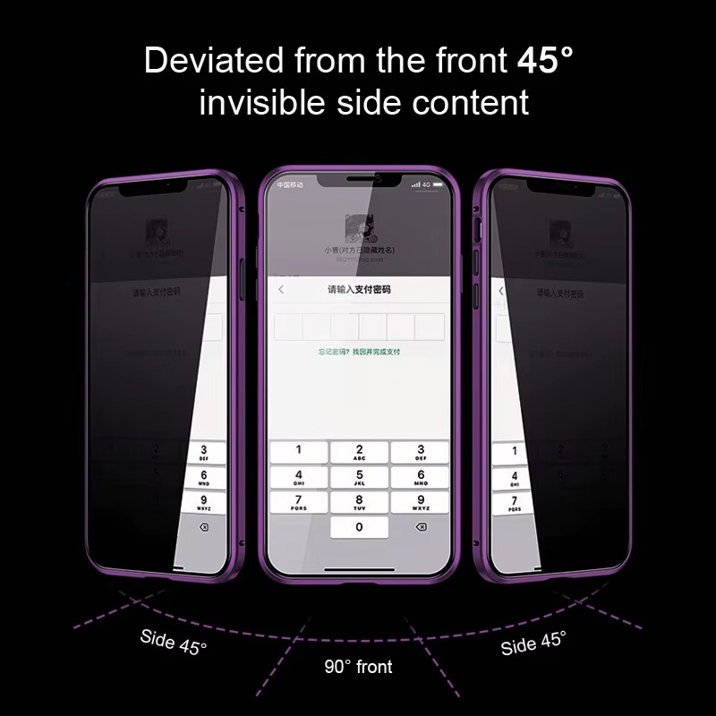 - Material: Privacy Tempered Glass (Front) + Clear Tempered Glass (Back) + Magnetic Metal Frame.