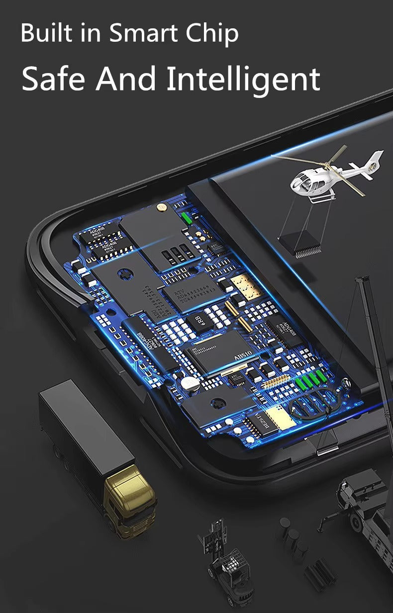 The LED lights let you know how much power is left, and the internal smart chip ensures safe, efficient charging without overheating or overcharging.