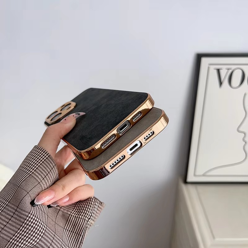 This shockproof iPhone case with camera lens and screen protection includes raised bezels around critical areas to guard against everyday impacts. The leather surface enhances grip while resisting fingerprints and wear, offering daily functionality with a refined edge.
