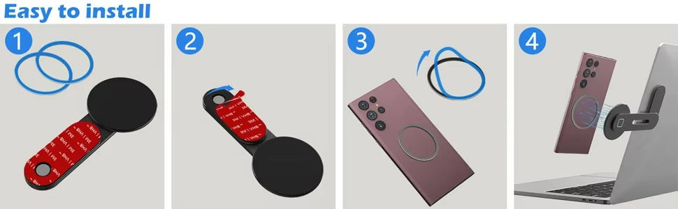 - Instructions: Peel adhesive backing, press holder to side of monitor, extend magnetic arm, and attach your phone to the magnet.
